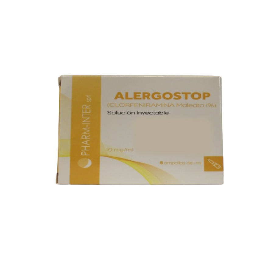 Cada ampolla de 1 mL contiene Clorfeniramina maleato 10 mg.