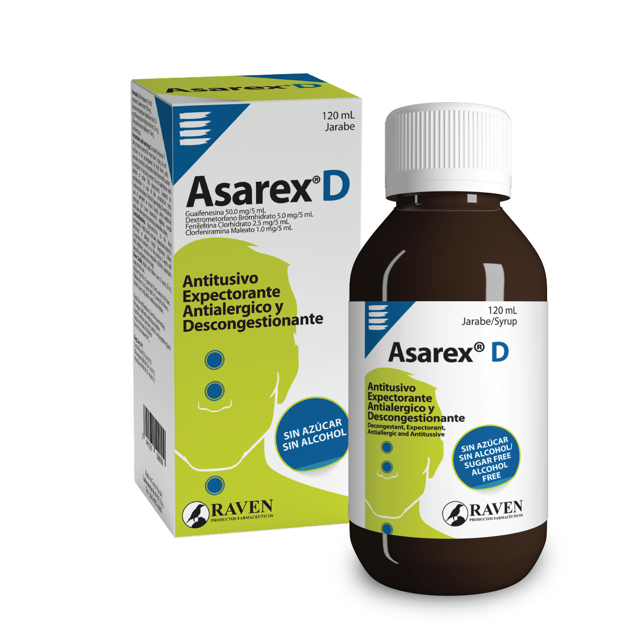 Cada cucharadita de 5 mL contiene: Guaifenesina 50.0 mg, Dextrometorfano Bromhidrato 5.0 mg, Fenilefrina Clorhidrato 2.5 mg, Clorfeniramina Maleato 1.0 mg, Exc. c.s.