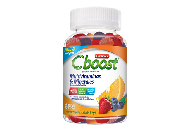 Suplemento alimenticio con multivitaminas y minerales. / Para toda la familia. / Libre de glutén. / Colores y sabores naturales. / 13 calorias por 2 gomitas. / Sabor: naranja, fresa y arándano.