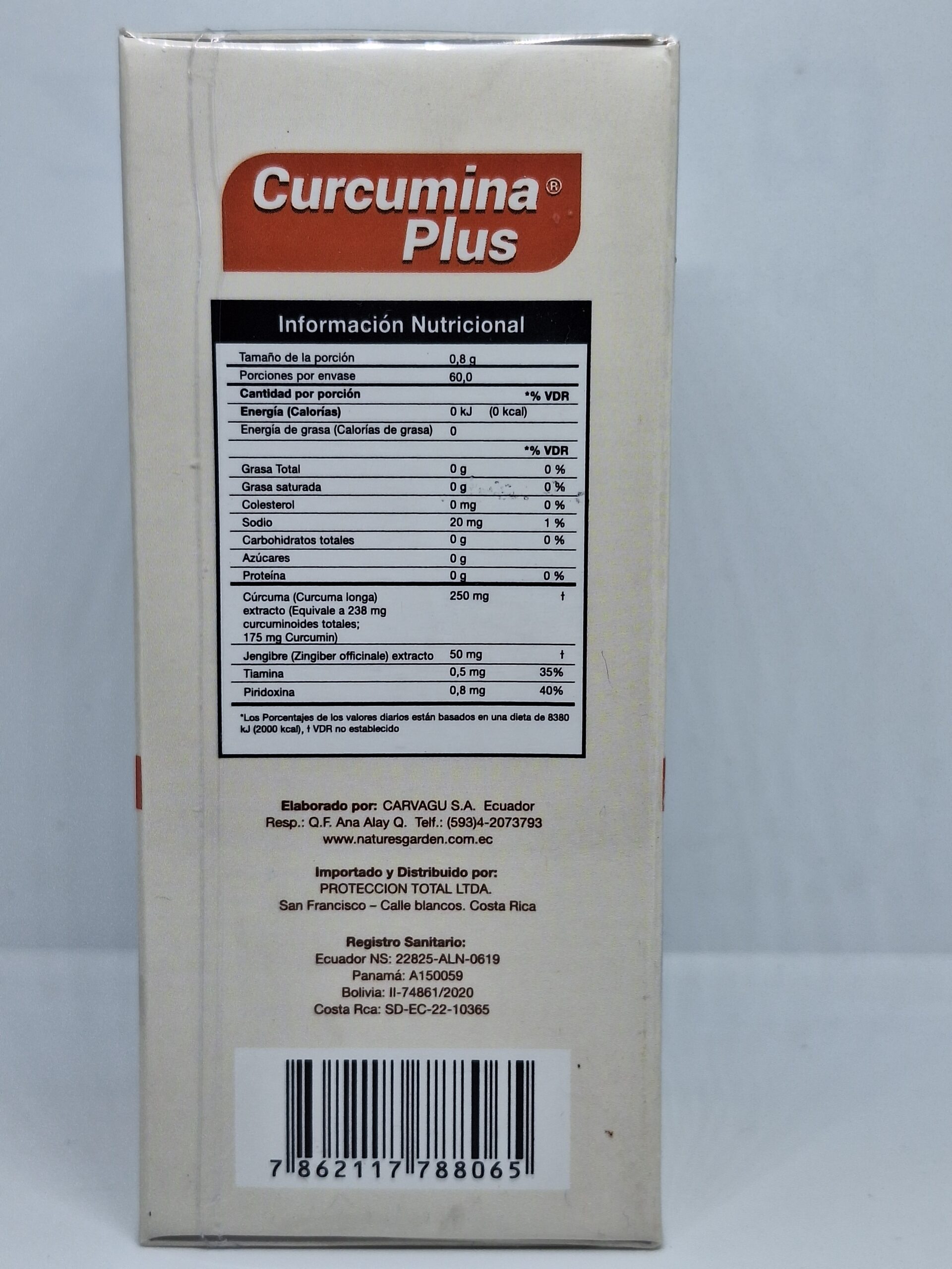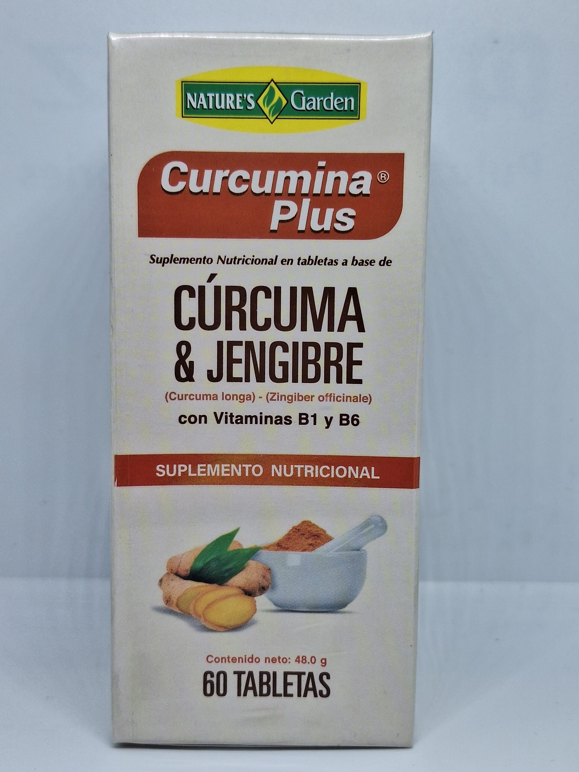 Cada tableta contiene 250 mg de cúrcuma, 50 mg de jengibre, 0,5 mg de tiamina y 0,8 mg de piridoxina.