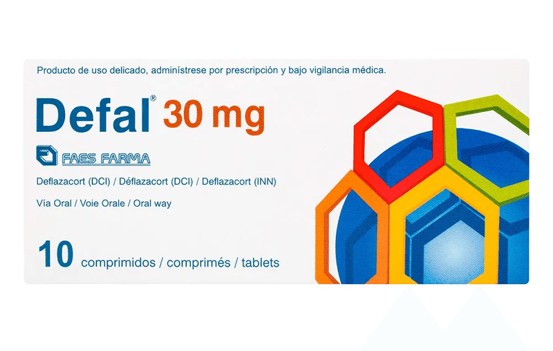 Defal 30mg tabletas caja por 10 unidades.