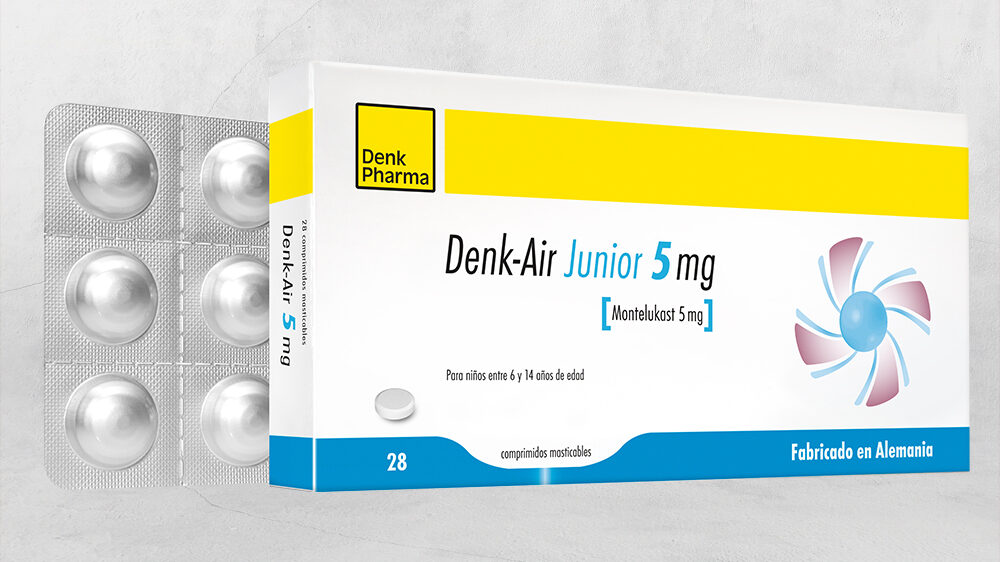 Denk-Air 5mg tabletas masticables caja por 28 unidades.