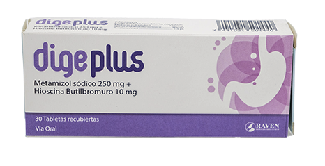 Componentes: Metamizol sódico 250mg, Hioscina Butilbromuro 10mg, Exc. c.s.