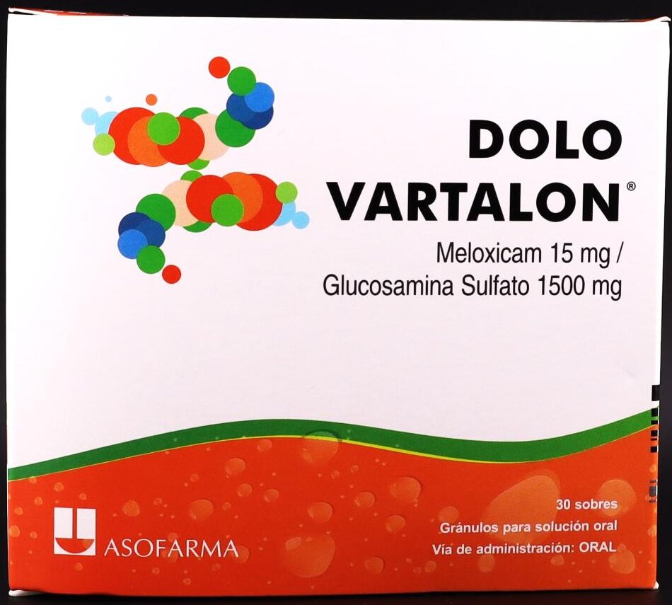 Componentes: Meloxicam 15mg, Glucosamina Sulfato 1500mg, Exc. c.s.