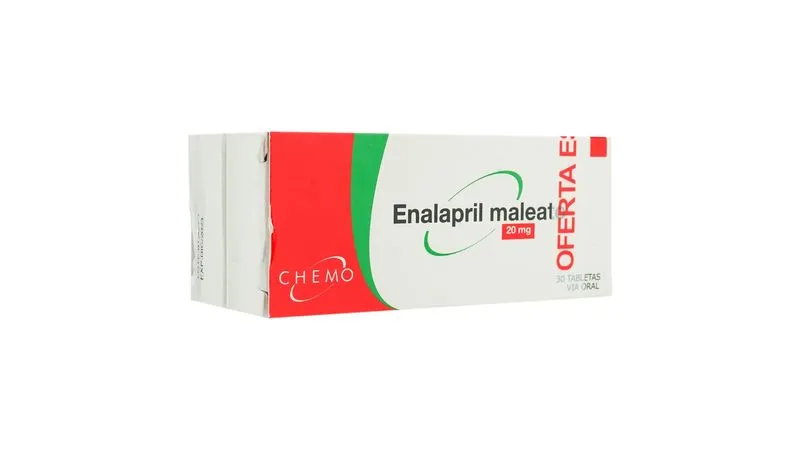 Enalapril maleato 20mg tabletas caja por 30 unidades.