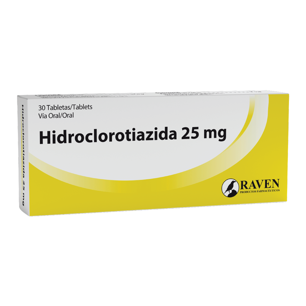 Hidroclorotiazida 25mg Raven tabletas caja por 30 unidades.