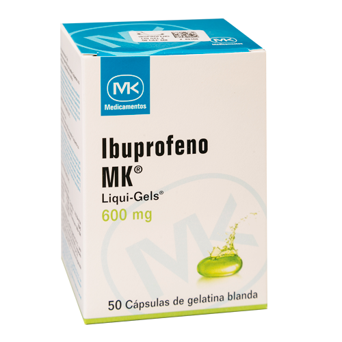 Ibuprofeno 600mg cápsulas caja por 50 unidades.