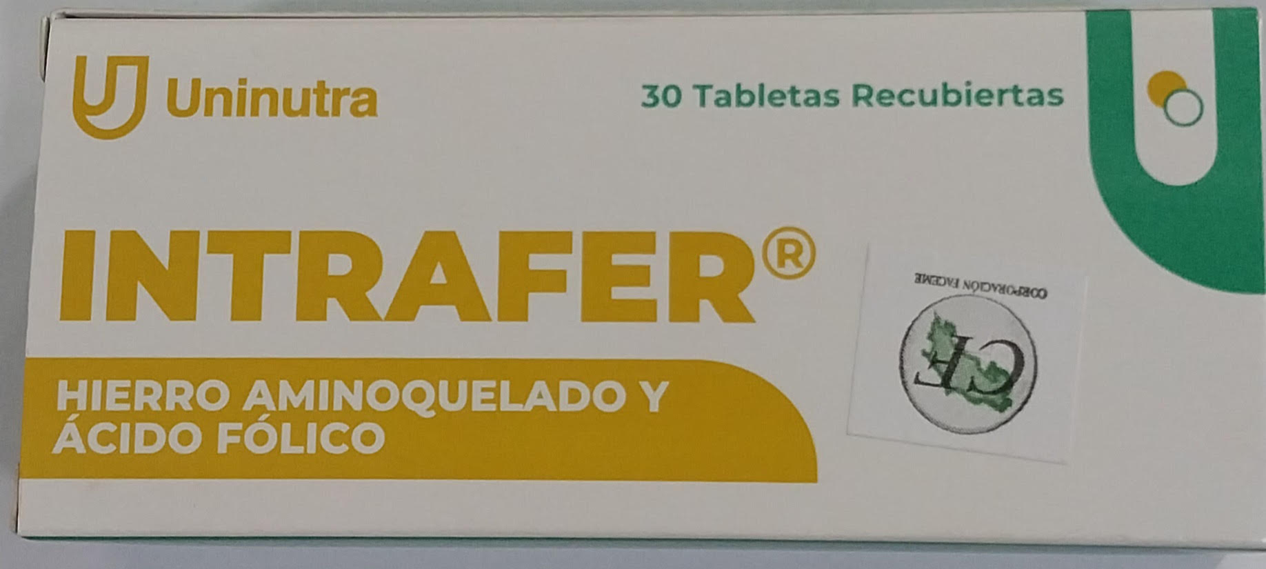 Cada tableta recubierta contiene Hierro aminoquelado eq a Hierro elemental 30mg, Ácido fólico 250mcg, Exc. c.s.p.