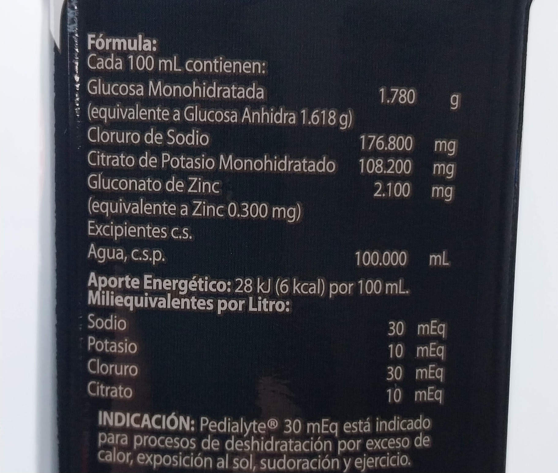 Tratamiento de la deshidratación.  Rehidratación para niños y adultos.  30mEq.