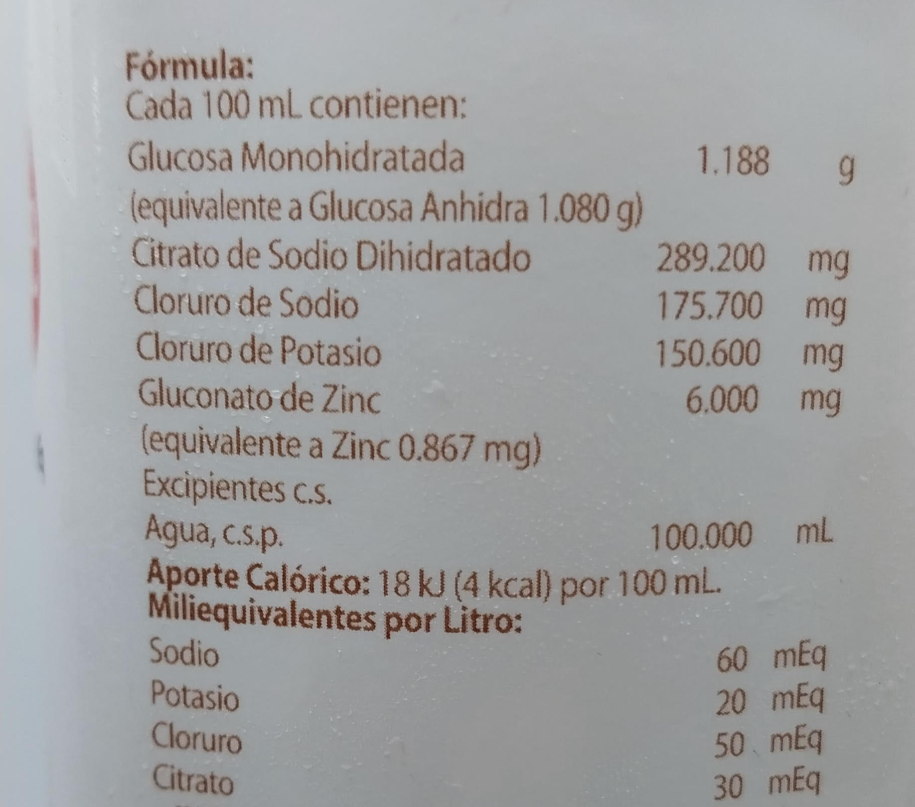 Tratamiento de la deshidratación.  Rehidratación para niños y adultos.  60mEq.