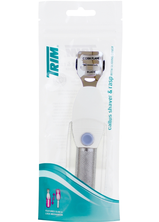Remojar previamente los callos en agua tibia antes de usar el afeitador. Luego utilize el raspador para alisar la superficie del pie.